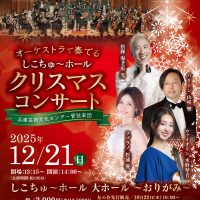 兵庫芸術文化センター管弦楽団による「クリスマスコンサート」は、しこちゅ~ホールの広々とした音響豊かな空間に、美しい弦や管楽器の音色が響きわたる特別なひとときです。