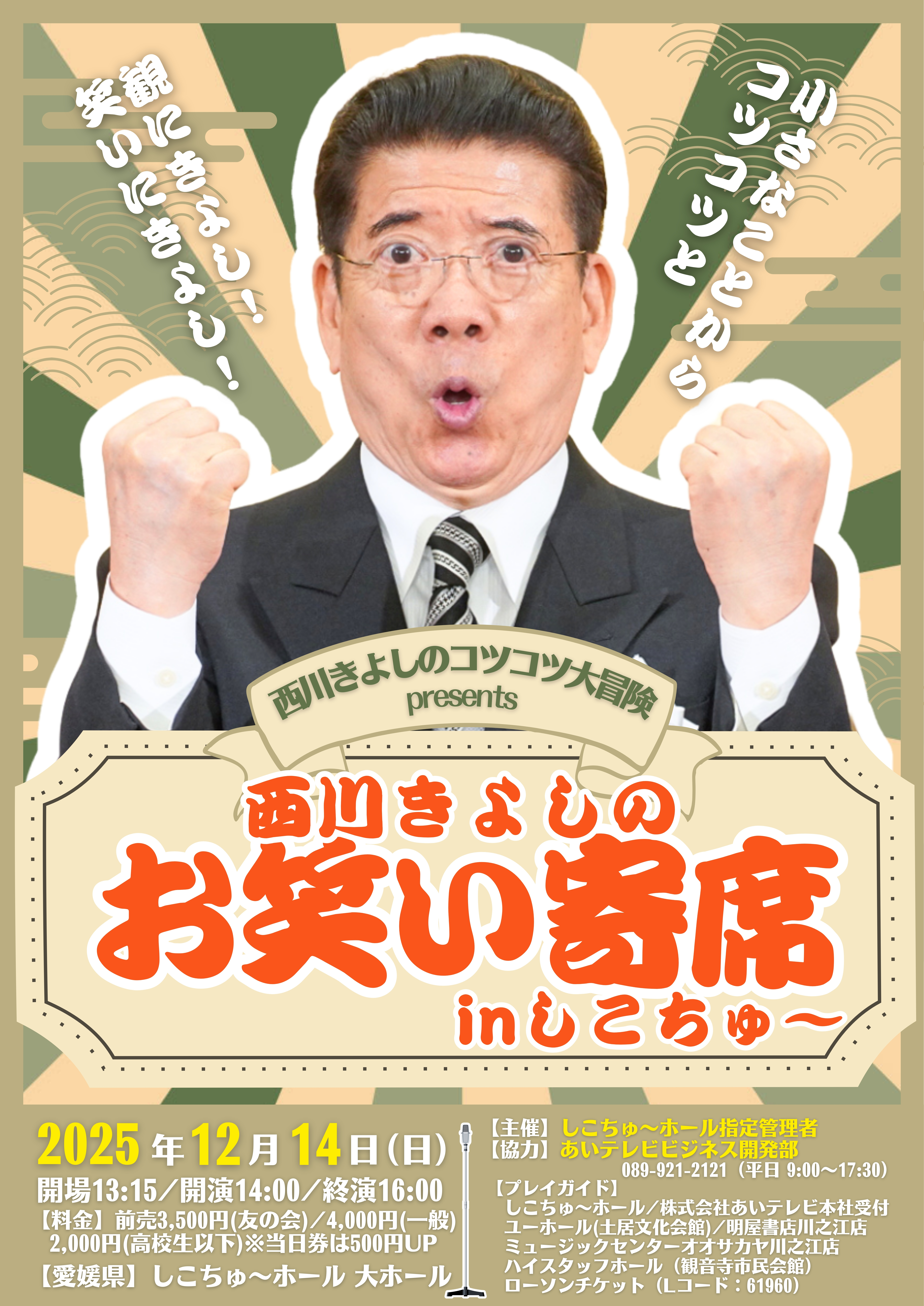 ベテラン芸人・西川きよしと個性豊かな若手芸人たちが、しこちゅ~ホールに大集合!