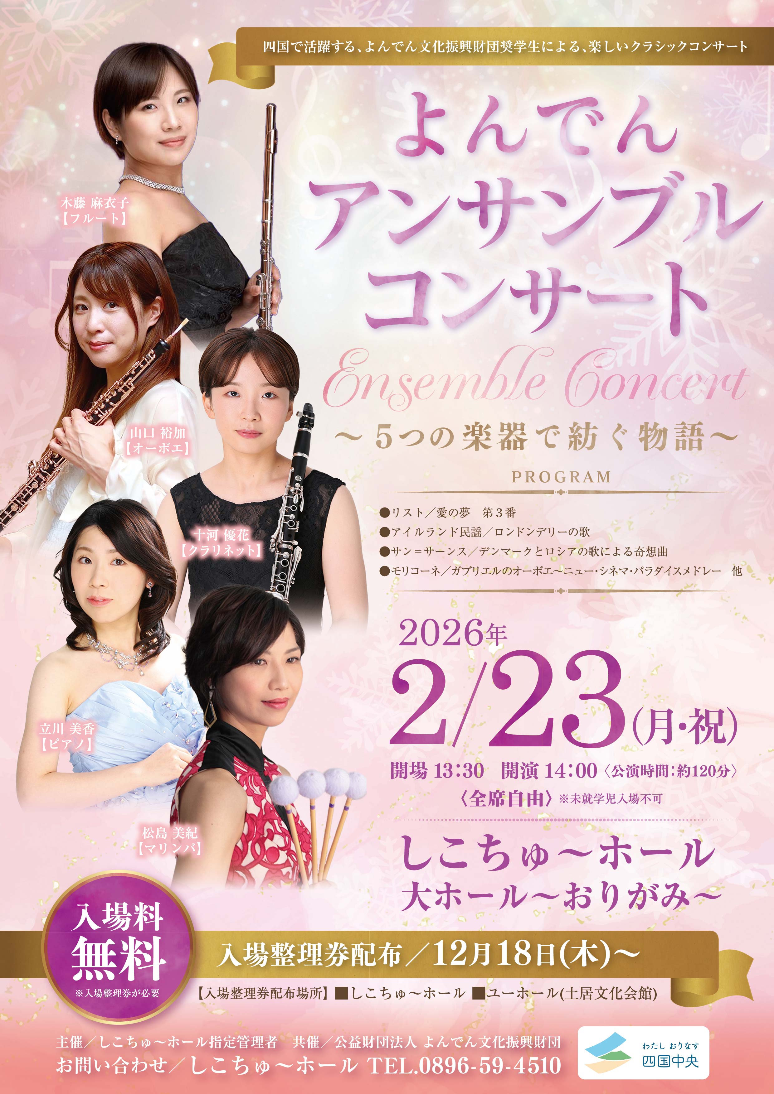 四国で活躍する、よんでん文化振興財団の奨学生たちが贈る、とっておきのクラシックコンサートを開催いたします。